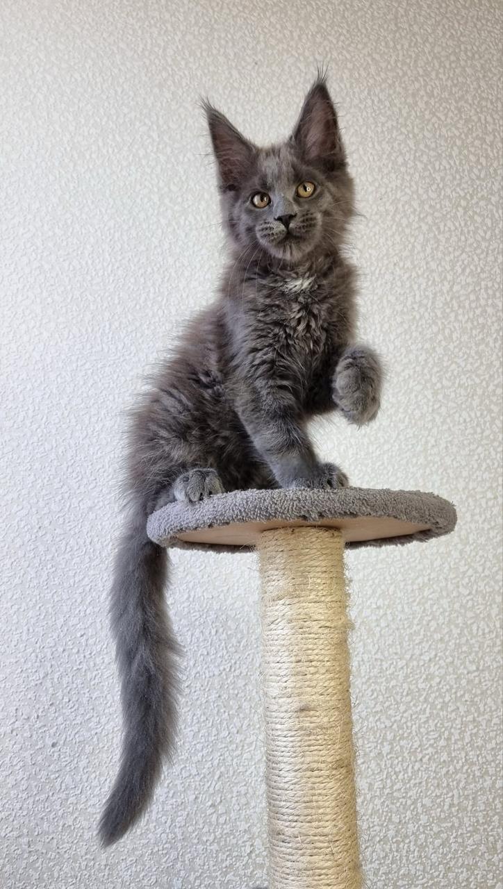 Fall in love with the intelligent, dog-like personality of a RazorCoons Maine Coon.